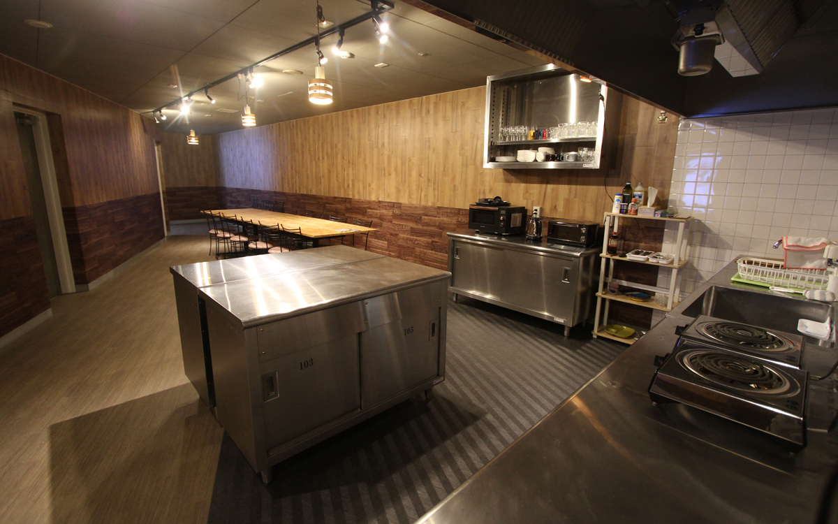 共有ダイニングでは、宿泊者同士で仲良く交流できる環境も整っております。