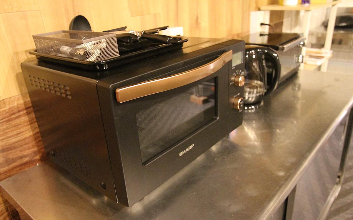 "豪”に宿泊するゲスト専用の共有キッチンが24時間ご利用いただけます。基本的な調理用具が揃っているので、食材を持ち込んでの滞在も可能です。 A There is a shared kitchen for the exclusive use of guests staying in Gou. It is available 24 hours a day. Basic cooking utensils (equipment) are provided, so you can bring and prepare your own food.