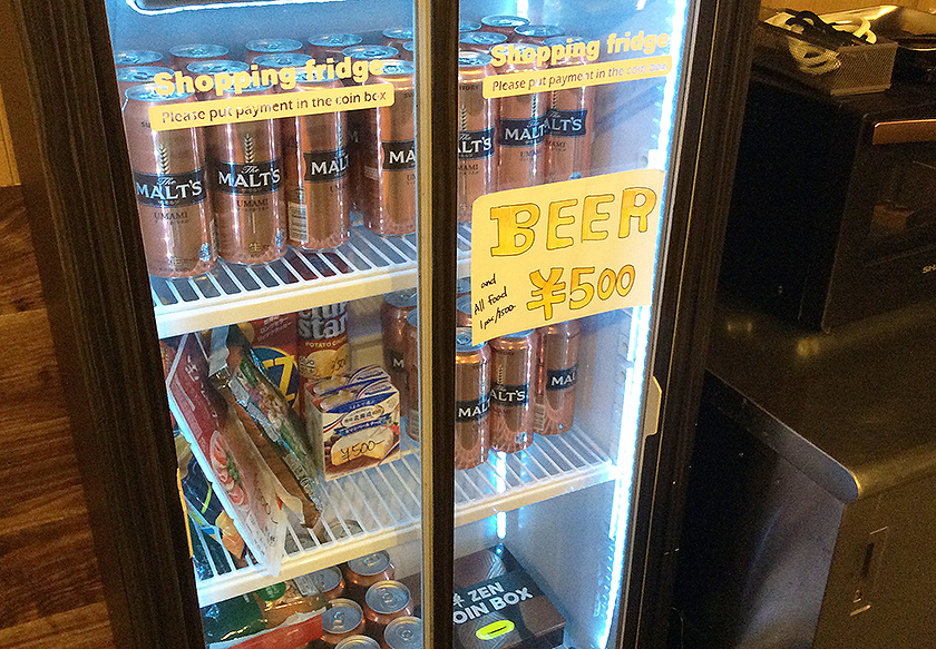 スキー場の売店施設以外でも、共有キッチン内では無人の販売冷蔵庫があります。お酒やおつまみなどもこちらでお求め頂けます。As well as the shop at the ski area, there is also an unmanned vending refrigerator in the shared kitchen. Alcohol and snacks can be purchased.